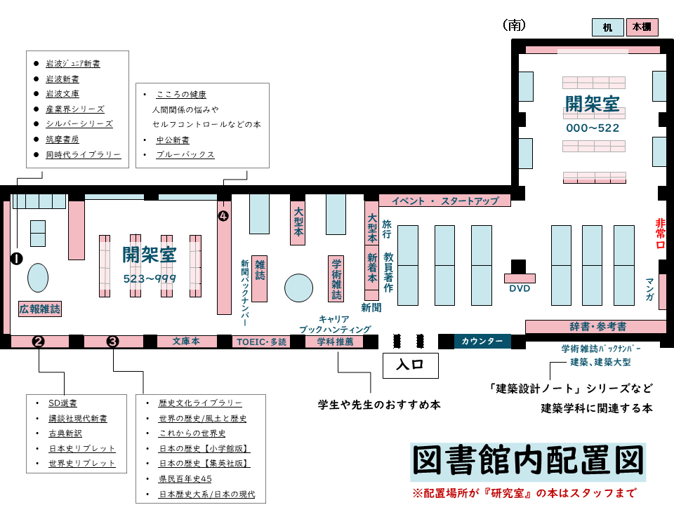 図書館は情報メディアセンター2階にあります。建物の前に車いす対応のスロープがあります。