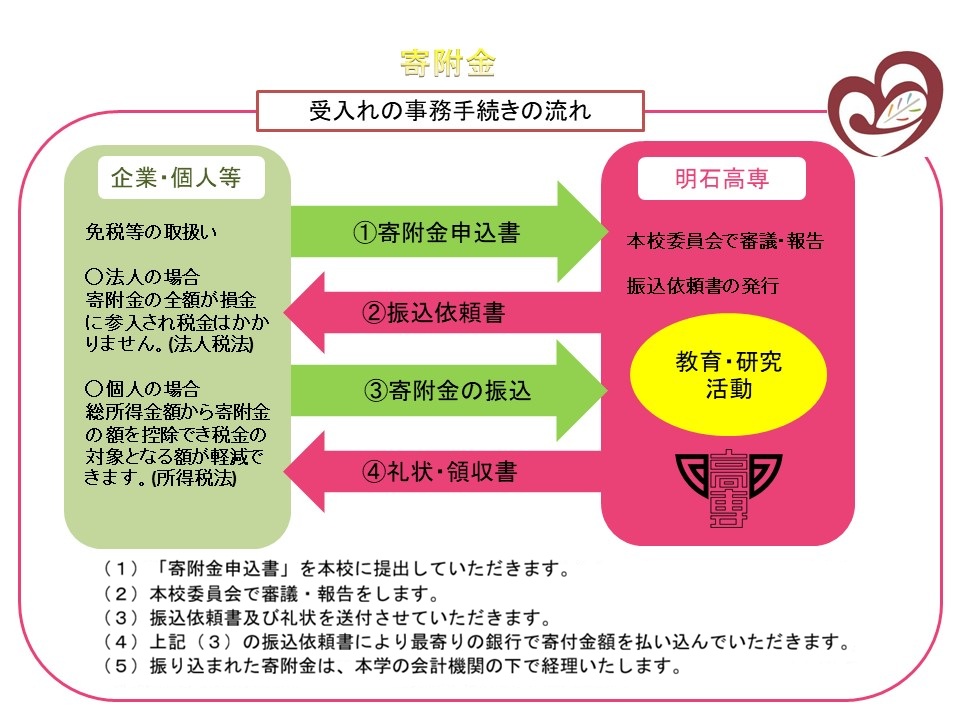 本校の学術研究や教育の充実の奨励・支援を目的に、民間企業や個人篤志家など各方面から幅広く寄附金を受け入れています。次世代を担うエンジニアの育成、学術研究の充実・発展のため、ご支援・ご協力を賜りますよう、よろしくお願い申し上げます。